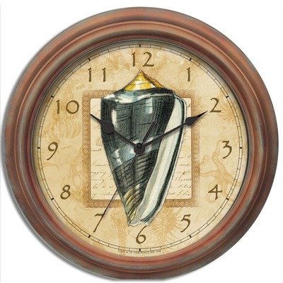 1022-4-SEASHORE Features: -Wall clock. -Distressed antique copper finish. -High quality quartz movement. -Black heart shaped hour, minute and second hands. -Black shell design. -One AA battery (not included). -Manufacturer provides one year limited warranty..../ Seashore Wall Clock with Black Shell Design in Distressed Antique Copper / Clocks Chime
